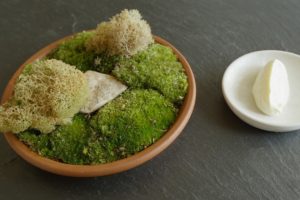 「苔です。バルサミコオイルに付けてお召し上がりください」