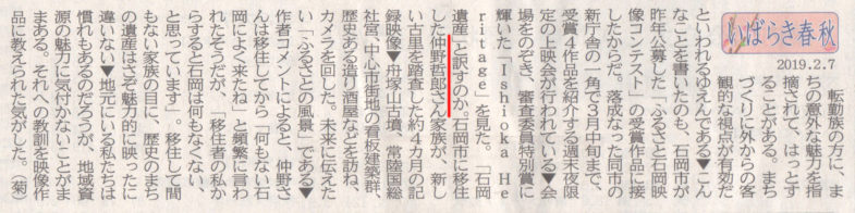 2019.2.7 家族で作った記録映像が、まさか新聞に載りました。新聞に名前が!しかも一面コラム。初体験です。